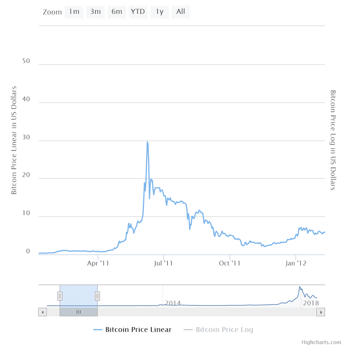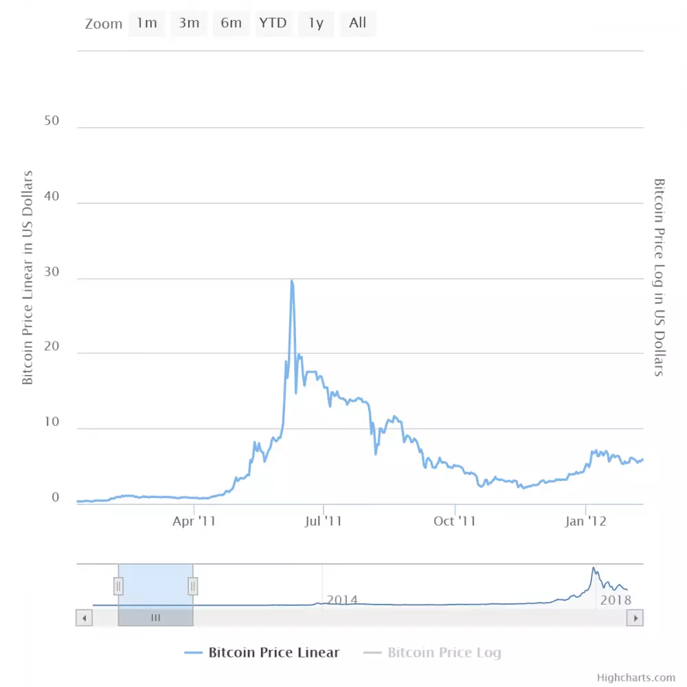 V roku 2011 klesla 8. augusta dňa 17. novembra cena Bitcoinu z 32 USD na 2 USD, čo znamenalo ďalší 94% pád.