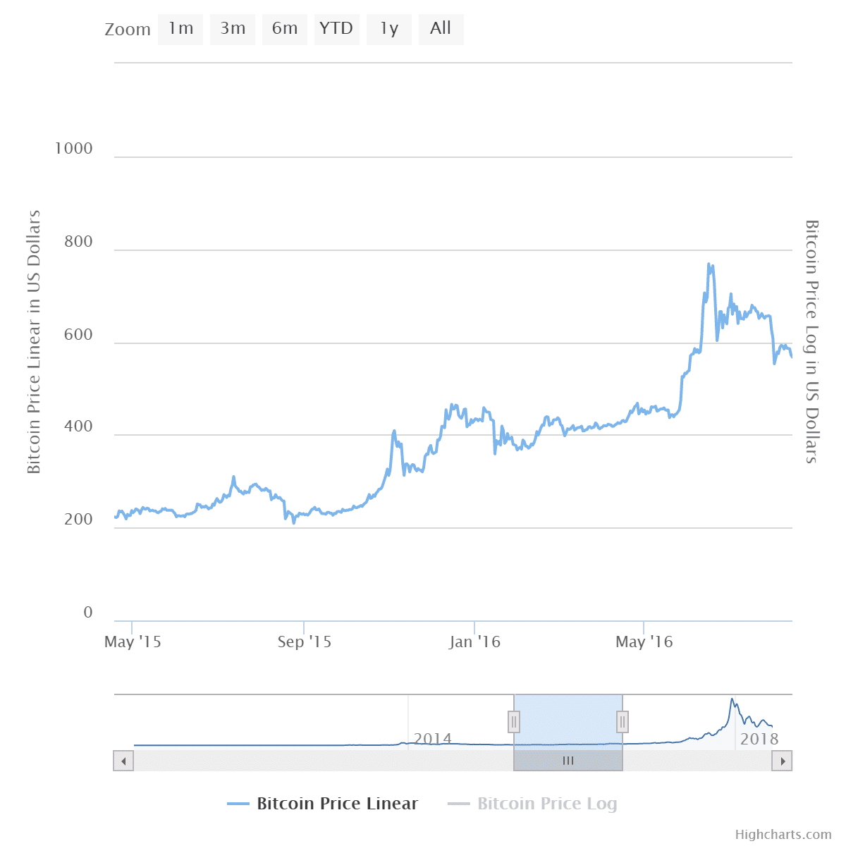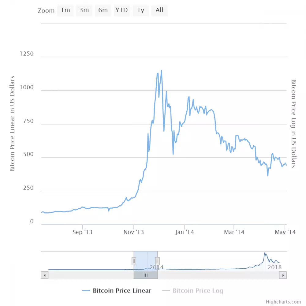 30. novembra v roku 2013 sa obchodoval za 1166 dolárov, keď potom ku 14. januáru 2015 klesol na 170 dolárov , čo znamenalo ďalší podstatný pokles o 85%.