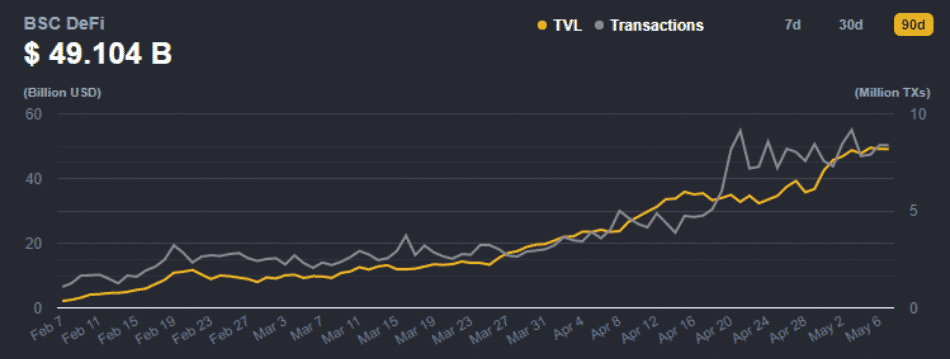 Ekosystém BSC je druhým najrýchlejšie rastúcim ekosystémom DeFi za Ethereom. Čiastočne vďaka jeho prepojeniu s ekosystémom Binance, ktorý má obrovské zdroje na to, aby mohol natívne protokoly poriadne rozbehnúť.