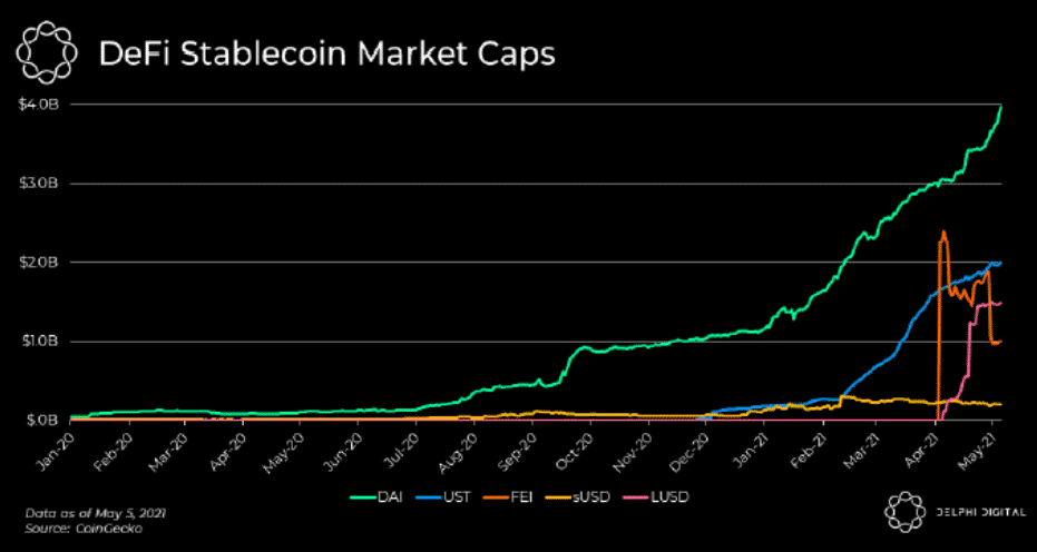 Podľa Delphi Digital zohrávajú natívne stablecoiny DeFi hlavnú úlohu v raste ekosystému. V súčasnosti tvoria takmer 10 miliárd dolárov z celkovej trhovej kapitalizácie.