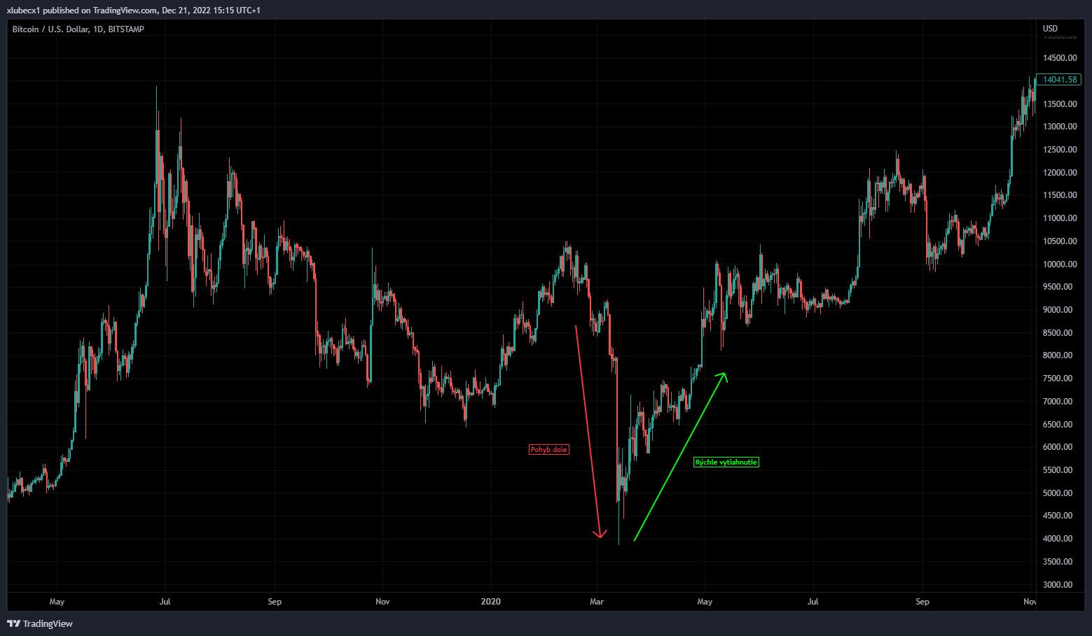 Cena Bitcoinu počas roku 2020. Zdroj: tradingview.com