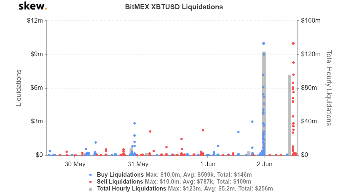 Dnes výrazne prevažovali longy. Stačil iba krátky pohyb smerom dole, aby BitMEX zlikvidoval veľkú časť týchto pozícií. Pri uzavretí longu sa predávajú Bitcoiny, čo posúva cenu ešte nižšie a likvidujú sa tak ďalšie long pozície. Vznikla tak kaskádová reakcia, ktorá cenu BTC v priebehu 15 minút poslala na 8600 $ – strata 1500 $ alebo 15%. Celkovo sa tak zlikvidovali longy v hodnote 120 miliónov dolárov.