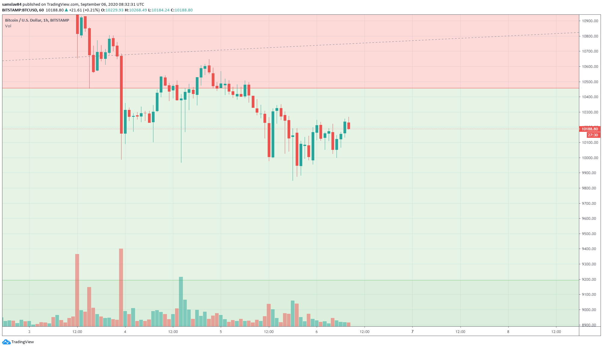 Trh s kryptomenami včera zaznamenal významnejší prepad po tom, čo Bitcoin na chvíľu navštívil sub-desaťtisícové hodnoty. V priebehu popoludnia klesol až na 9850 $ – blízko nami avizovaných 9700 $ kde sa nachádza CME gap.