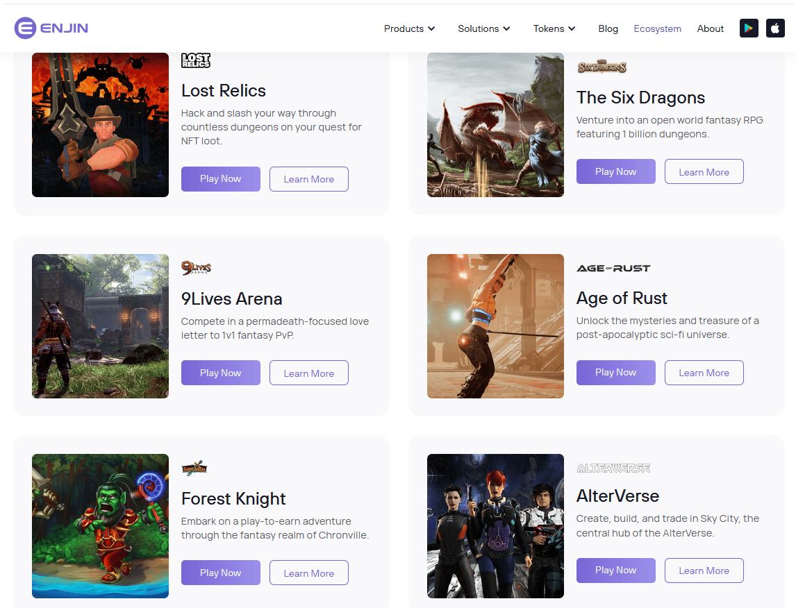 Druhým projektom, ktorý sa oplatí z fundamentálnych dôvodov sledovať, je blockchain Enjin. Projekt vznikol v roku 2009 so sídlom v Singapure. Od začiatku sa špecializuje na odvetvia metaverza, NFT a Webu 3.0. Projekt sa usiluje dosiahnuť ekologickú neutralitu a zabezpečiť nulovú uhlíkovú stopu. Vývojári siete spolupracujú s viacerými známymi organizáciami vrátane OSN. Zakladatelia siete sa pozerajú na technológiu blockchain a NFT vizionársky a veria, že obe technológie sú budúcnosťou ľudstva.