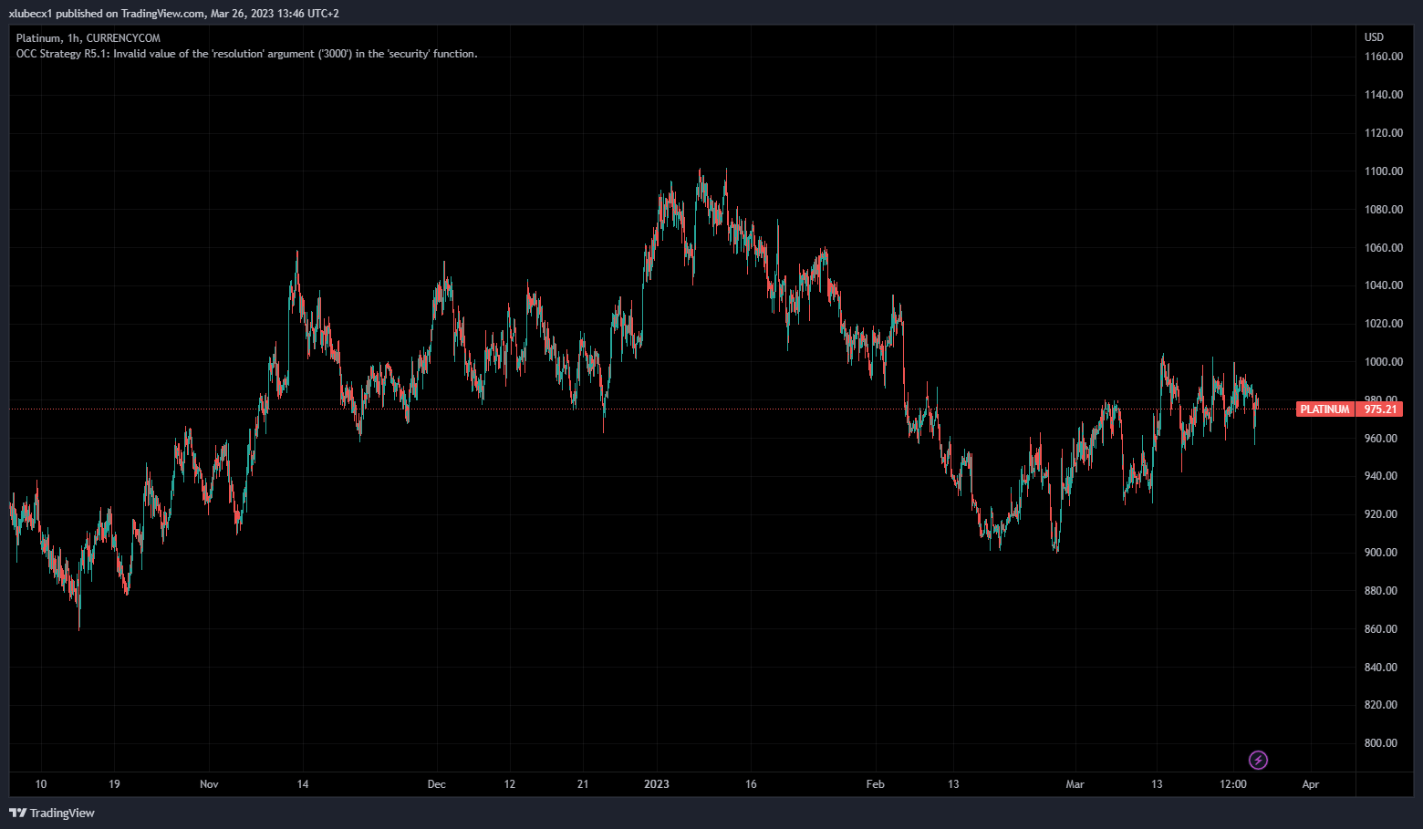 Cenový vývoj platiny. Zdroj: tradingview.com