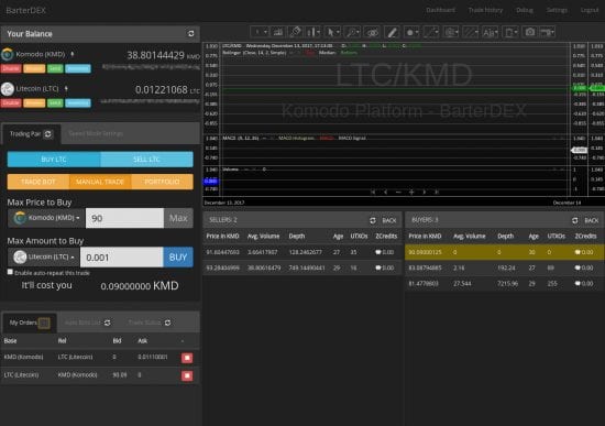 BarterDex, burza ktorá je produktom platformy Komodo, je aktuálne asi najviac sofistikovaná decentralizovaná burza, nakoľko využíva technológiu atomic swaps. V súčasnosti prebieha vývoj peňaženky, ktorá bude dostupná pre Windows, Mac aj Linux. K dnešnému dňu je na nej možné obchodovať iba štyri obchodné pár s veľmi nízkym denným objemom (1200 USD).