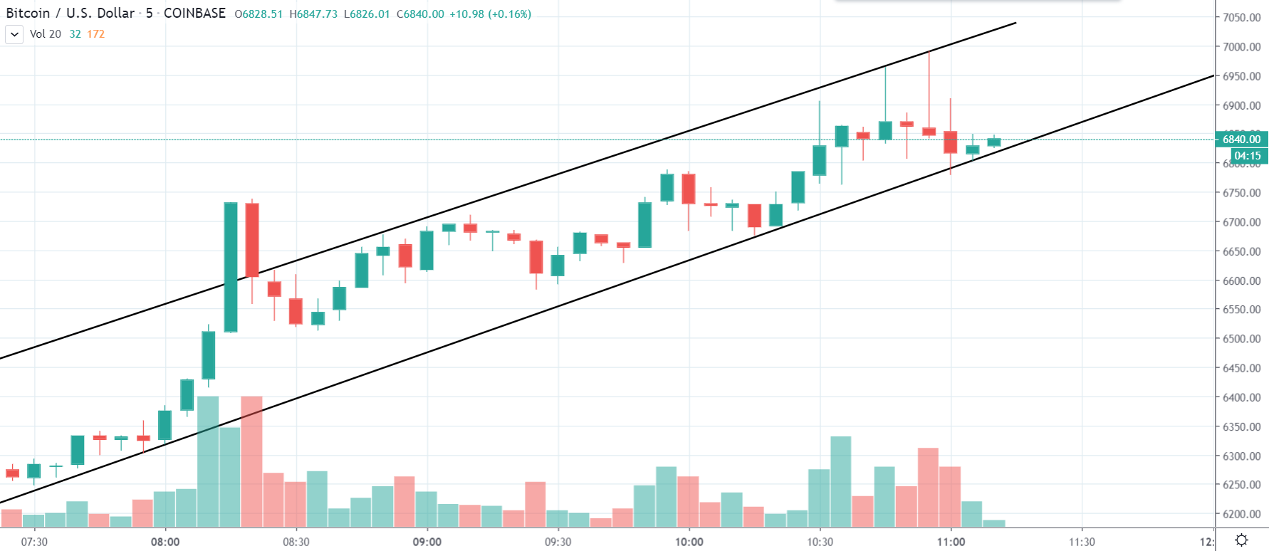 [12:10] Bitcoin pred niekoľkými minútami na väčšine búrz otestoval 7000 $. Teda… nie úplne. Na Coinbase, sa dostal na 6990 $ (6500 €) a to už je naozaj slušná cena. Teda… vzhľadom na fakt, že ešte včera ráno sme sa potácali na 5000 $.