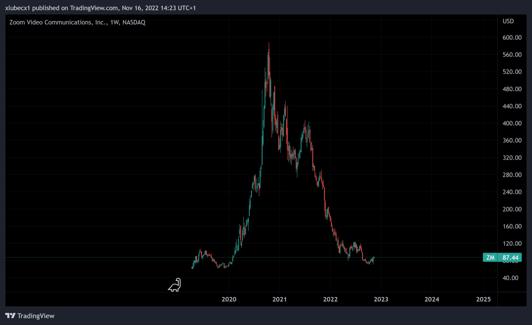 V podobnej bubline sa nachádzali aj akcie firmy Zoom, ktoré rapídne vyleteli počas koronakrízy, a za posledný rok sa prepadli o 85 %.