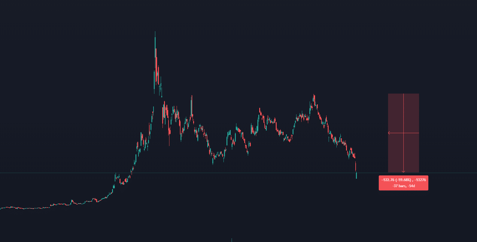 MicroStrategy dosiahla 52-týždňové minimum s hodnotou 319,01 USD za akciu. Presne pred rokom sa akcie tejto populárnej spoločnosti obchodovali za 1 307 USD.