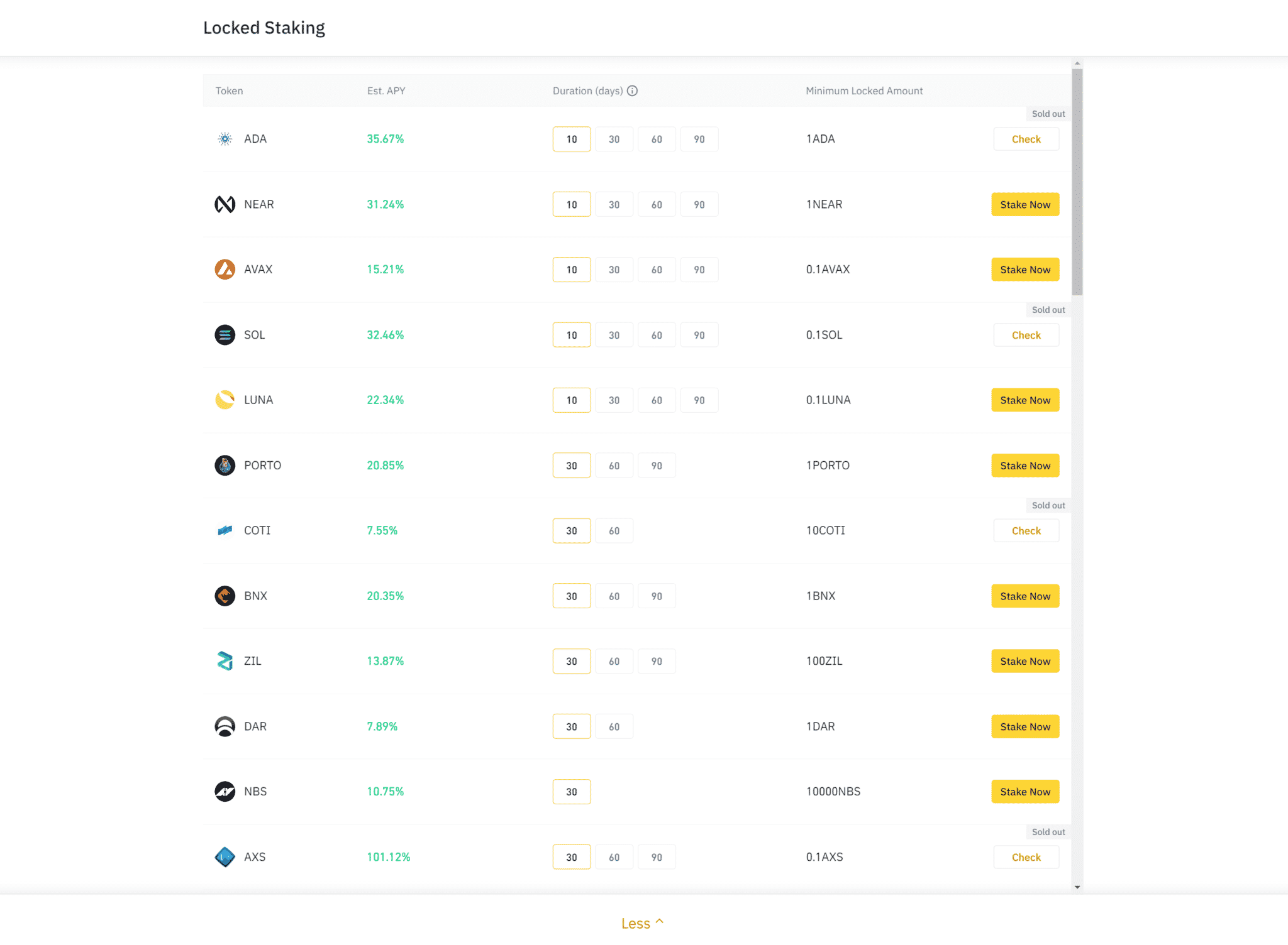 Ide o službu, v rámci ktorej burza Binance vždy vyberie na nejaké obdobie mince, ktoré si môžeme uzamknúť a získať tak odmenu. Zisk sa pohybuje na úrovni okolo 10 – 100 % ročne. Obdobie, počas ktorého je potrebné mať mince uzamknuté, je obvykle v radoch dní až týždňov. Pripisovanie odmeny funguje na princípe uzamknutia mincí na určitú dobu, po ktorej získame na peňaženku svoje nové mince úplne zadarmo. Nesmieme však porušiť dohodnutú dobu, počas ktorej tam mince musíme mať uzamknuté, v opačnom prípade sa úrok nepripíše. Pre začiatočníkov môžeme odporučiť náš predchádzajúci návod na Binance staking, kde sa dozviete, ako to funguje a ako si vytvoriť na tejto službe účet.