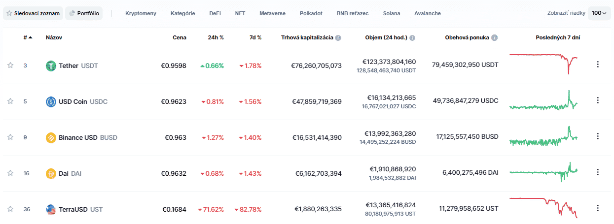 Hoci Terra USD (UST) v posledných dňoch stratila svoju fixáciu na dolár, neočakáva sa, že všetky stablecoiny čaká rovnaký osud.