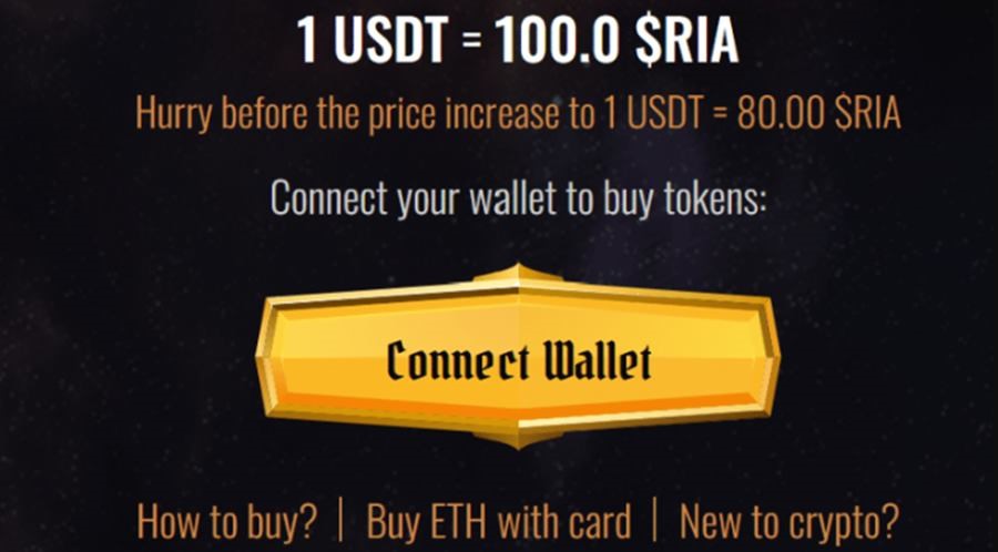 Jediný spôsob, ako kúpiť Calvaria tokeny RIA, je cez Ethereum (ETH) a USD Tether (USDT). Za bežné fiat meny si ho nezaobstaráte. Možno ste ich už kúpili v minulosti, a teda ich máte uložené na svojom účte na centralizovanej burze, ale ak nie, bude nutné, aby ste to urobili teraz. Po nákupe ich presuňte do novovytvorenej krypto-peňaženky.