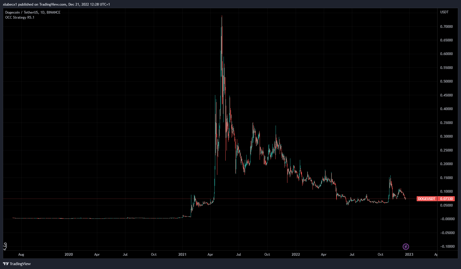 V súčasnosti aj napriek nepriaznivej situácii na trhoch je stále táto kryptomena za posledné 2 roky v takmer 3 000 % zisku. Počas svojho najväčšieho ošiaľu, na rozhraní rokov 2020 a 2021, urobila počas pár mesiacov dokonca 20 000 % zhodnotenie.