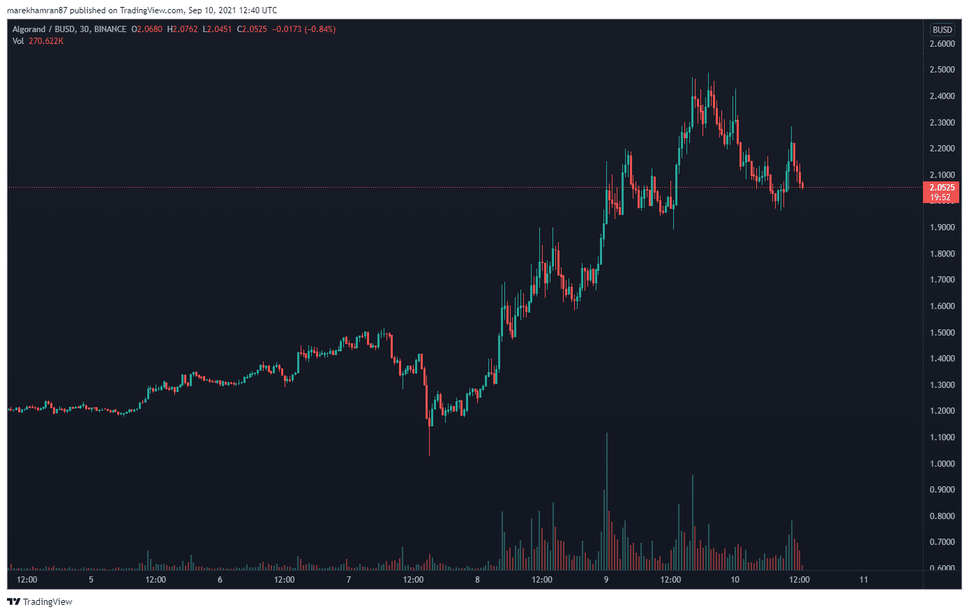 Token ALGO, ktorý spadá pod nadáciu, prežíva v skutku úspešné obdobie, ktoré sa odzrkadľuje na cene. Ešte pred pár mesiacmi sme ALGO evidovali na cene 0,65 USD. V čase písania tohto článku sa cena pohybovala na úrovni 2,05 USD.