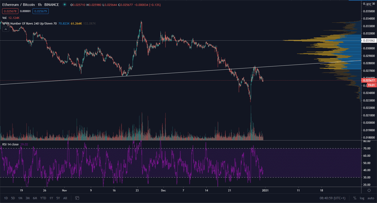 Je dôležité taktiež poukázať na reakciu ETH na kľúčovú úroveň rezistencie, ktorú vytvoril proti bitcoinu. Maximum teda vzniklo na rezistencii, ktorá bola v minulosti supportom. Ide tak o kľúčovú hodnotu, ktorú by malo ETH prekonať.