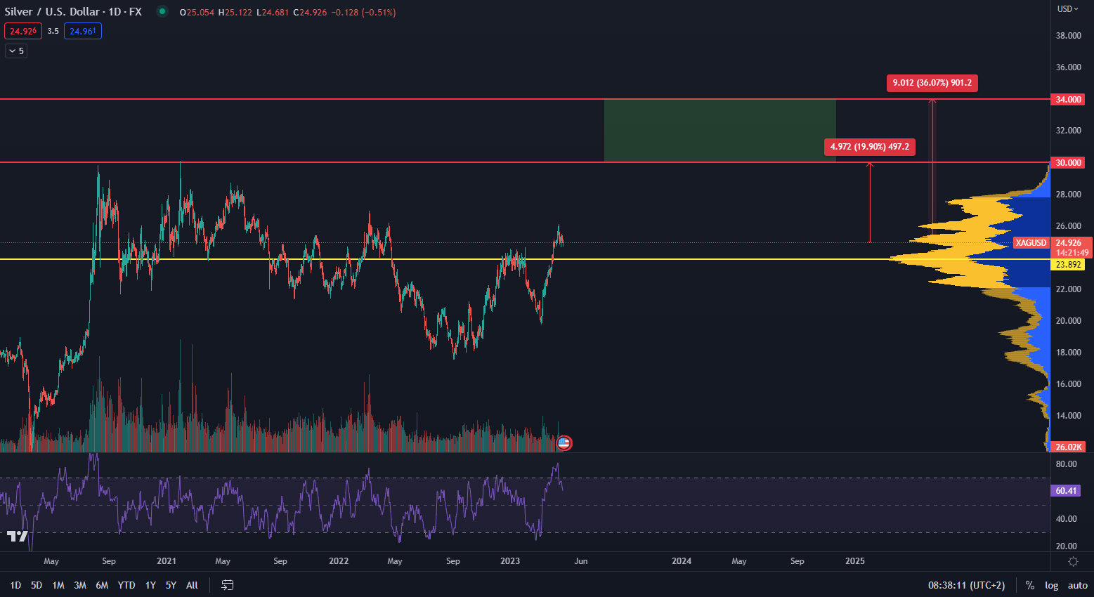 Striebro na ceste k 30 dolárom. Zdroj: TradingView