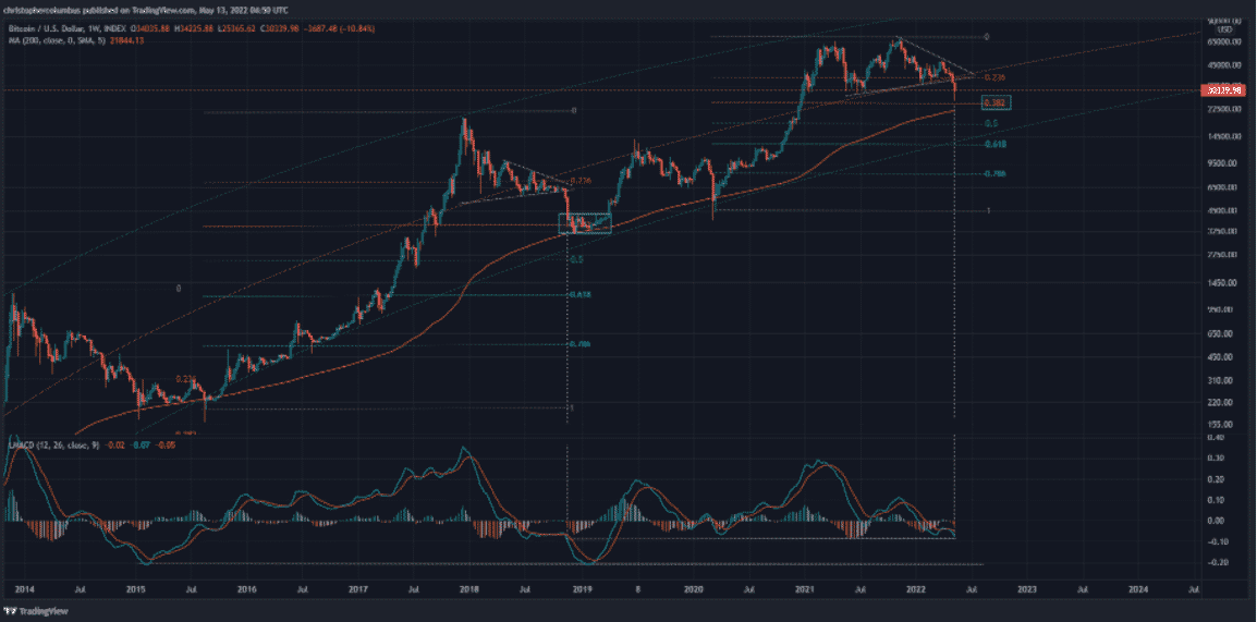 Pseudo-anonymný analytik známy ako Dave the Wave sa podelil so svojimi analýzami na Twitteri. Predpokladá, že obchodovanie s bitcoinmi v blízkosti 48-mesačného kĺzavého priemeru je miesto, kde má BTC historicky tendenciu klesať na dno.