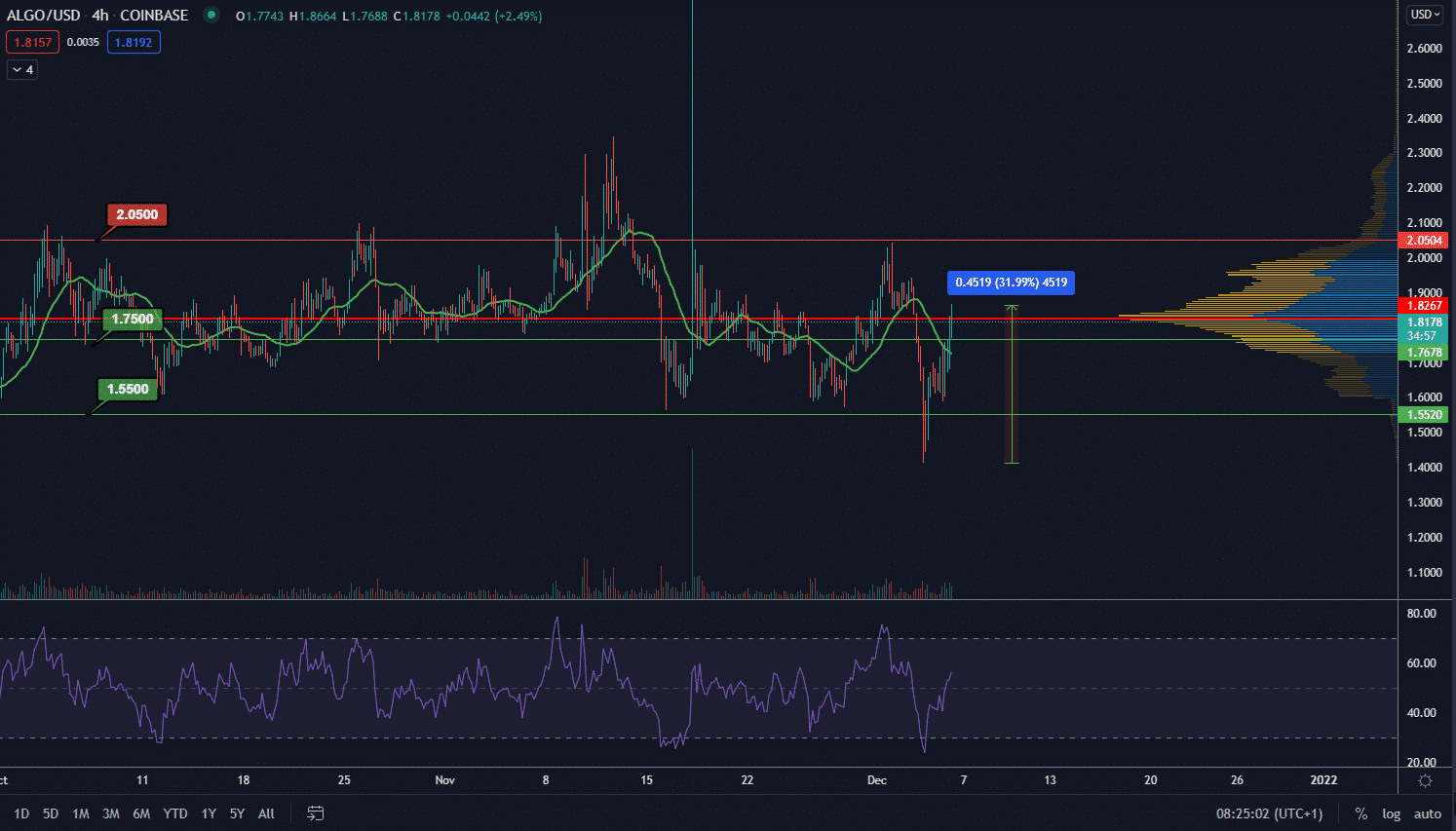 ALGO z krátkodobého hľadiska dosahuje jeden z najlepších retracementov spomedzi highcapových mincí. Od dna dosiahol už zhodnotenie 32 %. Z dlhodobého hľadiska navyše nie je v korekcii, ale v sideway štruktúre, ktorá môže vyvrcholiť pokračovaním rastúceho trendu.