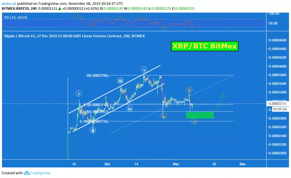 XRP/BTC je prvá kryptomena, na ktorú sa v dnešnom update pozrieme. Už včera sme mohli vidieť extrémne zvýšenú volatilitu, ktorá sa po dlhšej kumulácii dala očakávať. Samozrejme blížia sa zimné mesiace a takmer vždy v tomto období sme mohli sledovať extrémny nárast volatility. XRP ešte má cestu dostať sa na 0,786 % celého bullish cyklu. Po tejto korekcii by mal pokračovať ďalší rast.