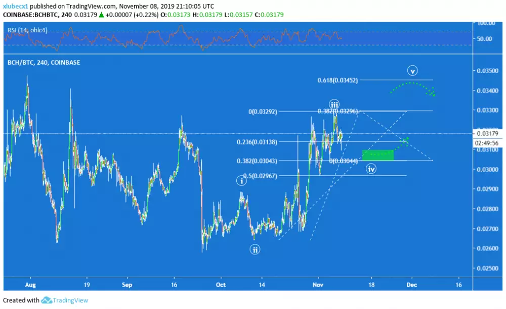 BCH/BTC alebo Bitcoin cash je posledná minca, na ktorú sa dnes pozrieme. Obvykle na túto kryptomenu nezvyknem robiť analýzu, keďže ide len o ďalší pump and dump coin. Posledné mesiace sa ale vytvorila pomerne dobre čitateľná štruktúra. Teraz bude veľmi dôležité sledovať retracement a či sa udrží BCH v bullish trende. BCH by malo podržať 0,03 BTC.