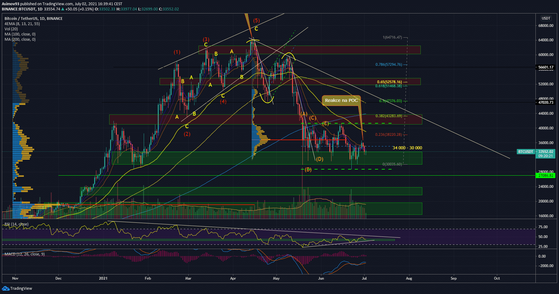 Kurz sa vtedy na okraji supportného pásma tiež zastavil, ale večer si dali medvedi rande a zrazili cenu do tesnej blízkosti 30 000 USD. Následne prišlo logicky to otestovanie. Nedivil by som sa preto, že sa popísaný scenár zopakuje.