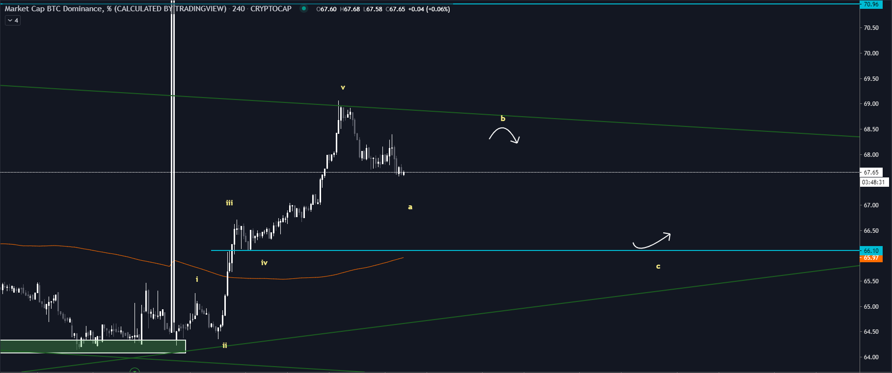 Rovnako by to v našom prípade znamenalo aj to, že leto bude zrejme ešte nuda, ale ku koncu roka trh začne štartovať. Aktuálne však na 4H môžeme očakávať menší pokles dominancie. Na dennom grafe sa nič nemení. Dominancia je na dennom grafe stále bullish, pretože nás stále drží trendová línia.