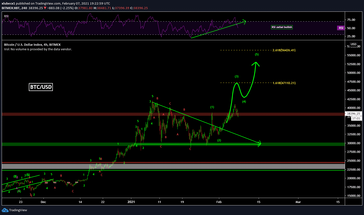 Bitcoin sa nám krásne pohol smerom hore a testuje znovu ATH. Dôležitejšie je však to, že pre zatiaľ sme zlomili veľmi silnú rezistenciu na hodnote 38 000 USD! Ak sa udrží Bitcoin vyššie ako je tento aktuálne už support, tak by mu nemalo nič brániť v raste. V prípade vytvorenia fake break out bullish pohybu stále nemusí byť nič stratené. Bitcoin naberá opäť na bullish sile a podľa mňa je to len otázka niekoľkých dní a sme znovu na ATH. Máme príležitosť si nabrať ďalšie obchody za stále podľa veľmi férovú cenu.