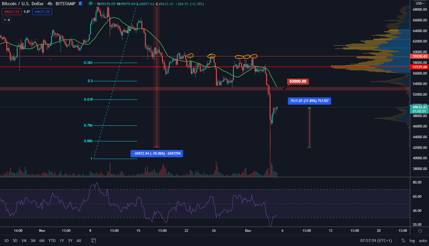 Bitcoin sa od minima odrazil smerom nahor a dosiahol zisk približne 18 %. Tento odraz je však zatiaľ nepodstatný a je súčasťou korekcie. Najbližšia rezistencia sa nachádza na hladine cca 53 000 $ a je to najviac bullish scenár pre rastúci leg, ktorý momentálne sledujem. Okrem predošlej supportnej úrovne sa tam nachádza aj oblasť MA21.