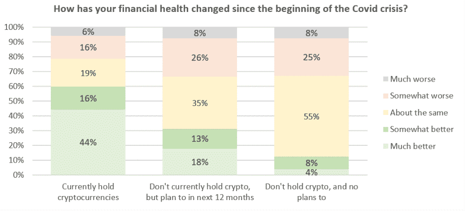 Až 44 % investorov do BTC uviedlo, že ich finančná situácia sa počas pandémie zlepšila.