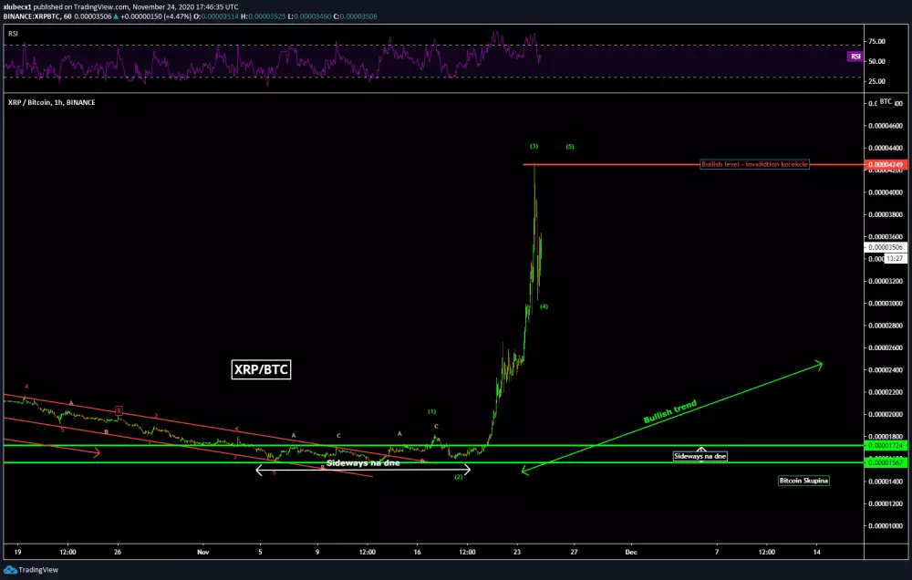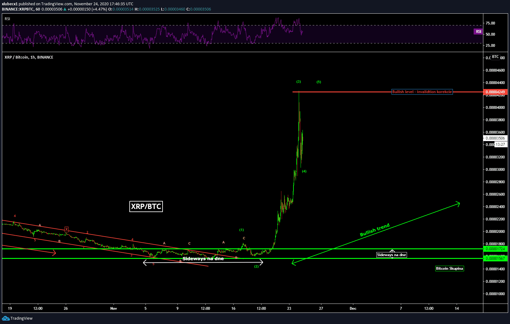 Keďže počas včerajšieho streamu bol veľký záujem o XRP, dnes sa teda na neho pozrieme znovu. Opäť platí to isté. Altcoin je poháňaný silným fundamentom okolo Airdropu, ktorý bude už čoskoro. Určite nie je dôvod na short, keďže nevieme teraz fakt – a to, kam vyrastie. Podľa Elliot wave je tu potenciál ešte aspoň raz sa dotknúť minulého high, no na otvorenie obchodu je to veľmi riskantné!