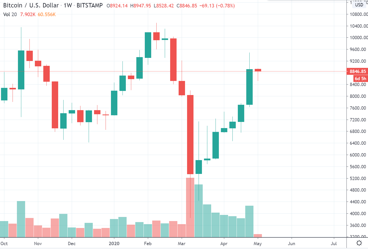 Takže.. čo myslíte, ako bude vyzerať nadchádzajúcich sedem (vlastne už iba šesť) dní? Halving bude až na budúci pondelok, resp. možno až utorok!