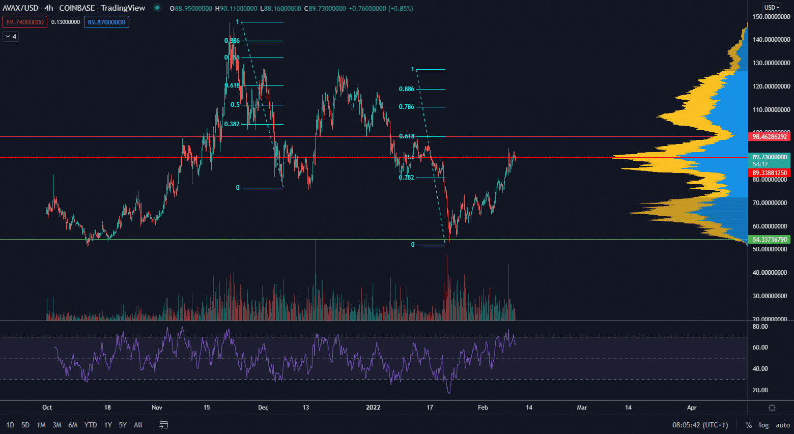 Avalanche smeruje k dlhodobému predošlému maximu, aby mohol definitívne potvrdiť reverziu trendu. Kontakt s predošlým maximom však nemusí hneď znamenať okamžité prerazenie na prvý pokus. Zdá sa však, že objemy sú vysoké a je chuť aj ochota AVAX obchodovať.