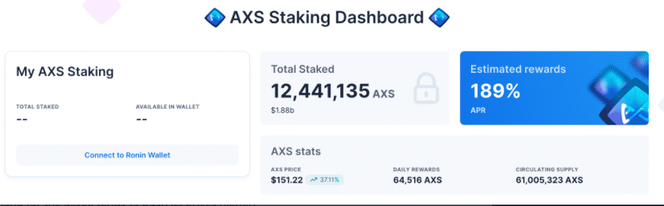 Najnovší objem nákupu na trhoch Axie Infinity sa objavil aj vďaka novej funkcii, ktorá umožňuje držiteľom AXS stakovať svoje tokeny a získavať výnosy. Od svojho uvedenia na trh vo štvrtok táto funkcia prilákala viac ako 12,44 milióna tokenov AXS (1,88 miliardy dolárov pri súčasných sadzbách).