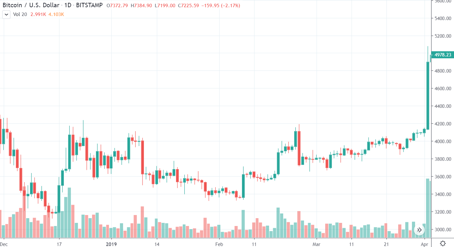 Pre Bitcoin sa to začalo všelijako. Kráľ kryptomien sa prvé tri mesiace roku 2019 trápil na dne. Akumuloval hodnotu v oblasti 3 200 – 4 200 $ a nedialo sa prakticky nič zaujímavé. Zlé jazyky už naplno rozširovali zvesti o konci Bitcoinu a všetkých kryptomien, no na trhu sa pomaly začala objavovať pozitivita.