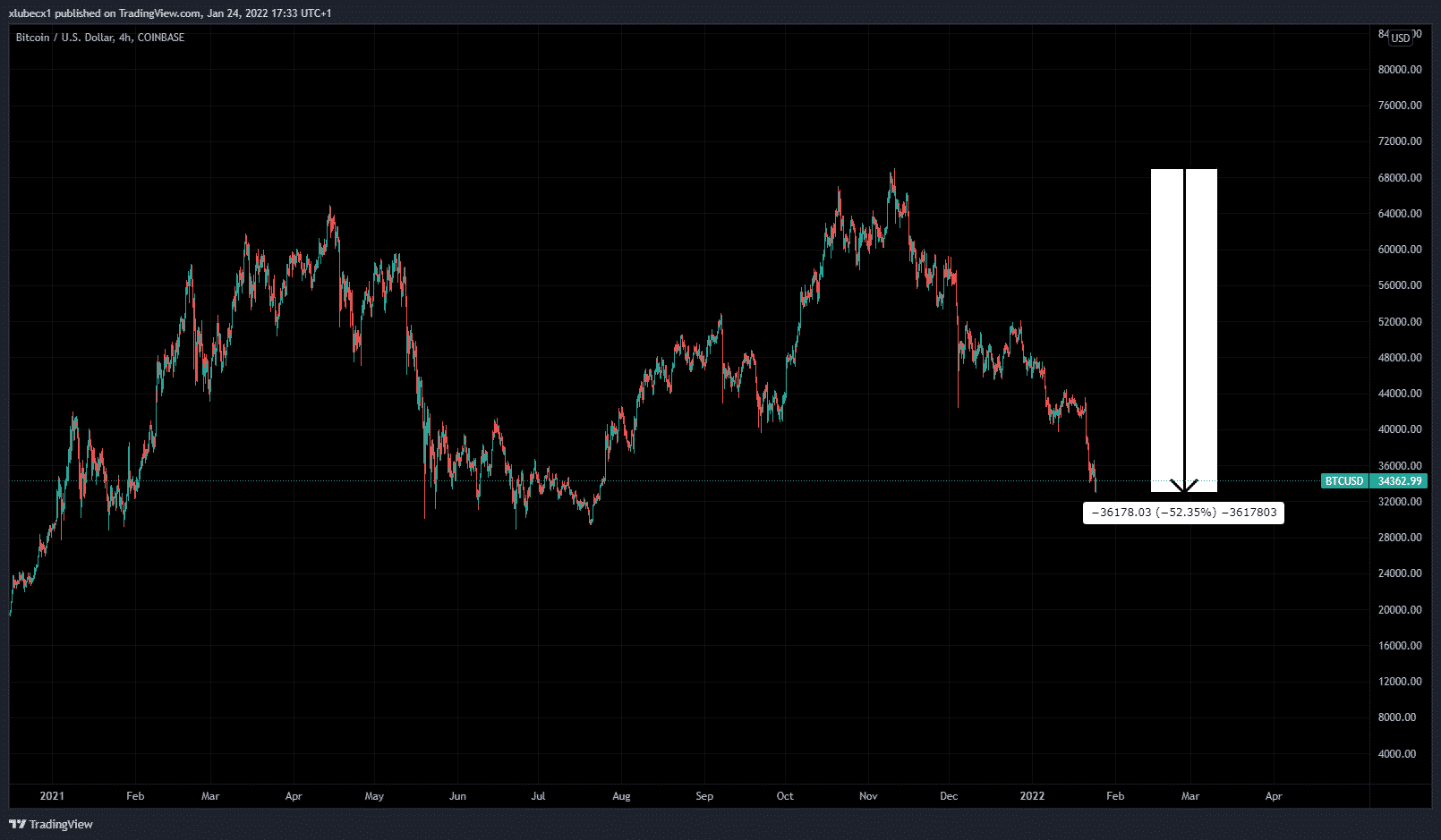 Faktorov môže byť niekoľko. Tie najzásadnejšie sú tapering, obavy z historicky najvyššej koronavírusovej vlny a aj konflikt na Ukrajine. Väčšina trhov medzi sebou posledné dni koreluje, takže nevidíme pokles iba na Bitcoine, ale dokonca na väčšine altcoinov a akcií. Možným vysvetlením tohto poklesu je aj začiatok korekčného obdobia. Napríklad najväčší americky index S&P500 predchádzajúce roky zažíval jedno z historicky najlepších období. Keďže na trhu sa striedajú cykly – rastúce a klesajúce obdobia –, nemalo by byť žiadnym prekvapením, ak by bol rok 2022 skôr v negatívnej nálade. Pri Bitcoine hlavne záleží na rozvoji technológie a dostupnosti stále väčšiemu počtu ľudí, čo prirodzene láka nových potenciálnych investorov.