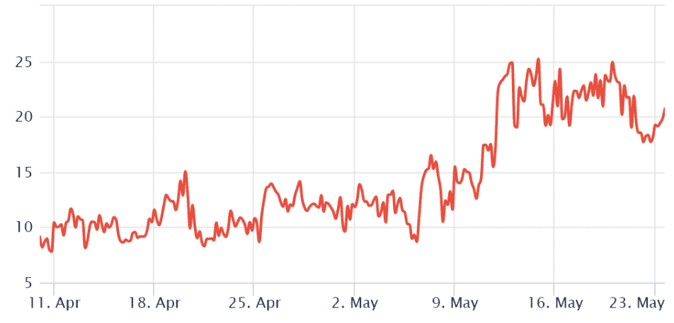 Indikátor sa 9. mája posunul nad 12 % a dostal sa na úroveň „strachu”. Navyše, nedávnych 25,4 % bolo najhorším údajom, aký bol kedy zaznamenaný pre túto metriku.