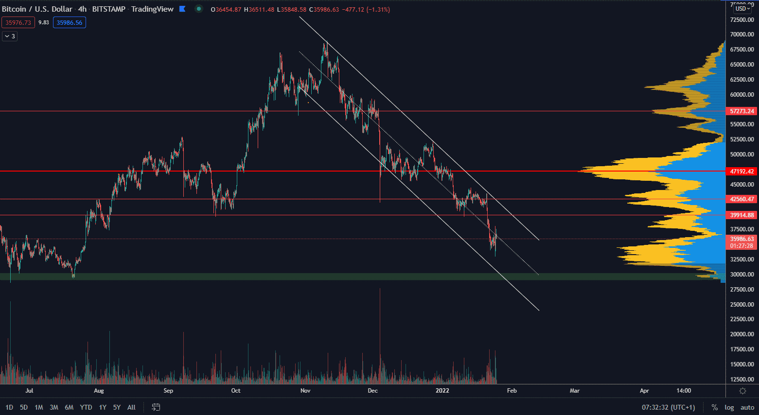 Bitcoin neustále pokračuje v korekcii vo forme vlajky a stále nepotvrdil dno tejto štruktúry. Krátkodobo sa objemy zdvihli, no od prerazenia rezistencie sme ďaleko. V podstate nikto nevie, kde bude definitívne ukončenie tohto prepadu. Možno sme ho už dosiahli a možno nás čaká definitívna posledná likvidácia, po ktorej nastane rast.