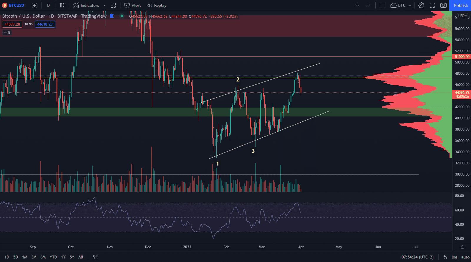 Bitcoin nakoniec rešpektoval rezistenciu a minimálne objemy spôsobili korekčný leg nielen na grafe hlavnej kryptomeny, ale aj na altcoinoch. Z ascending trianglu sa teda nepodarilo dosiahnuť target 51 000 $ a cena vytvára potenciálnu medvediu vlajku. Kde sa teda nachádzajú supportné zóny najbližšie trhovej cene?
