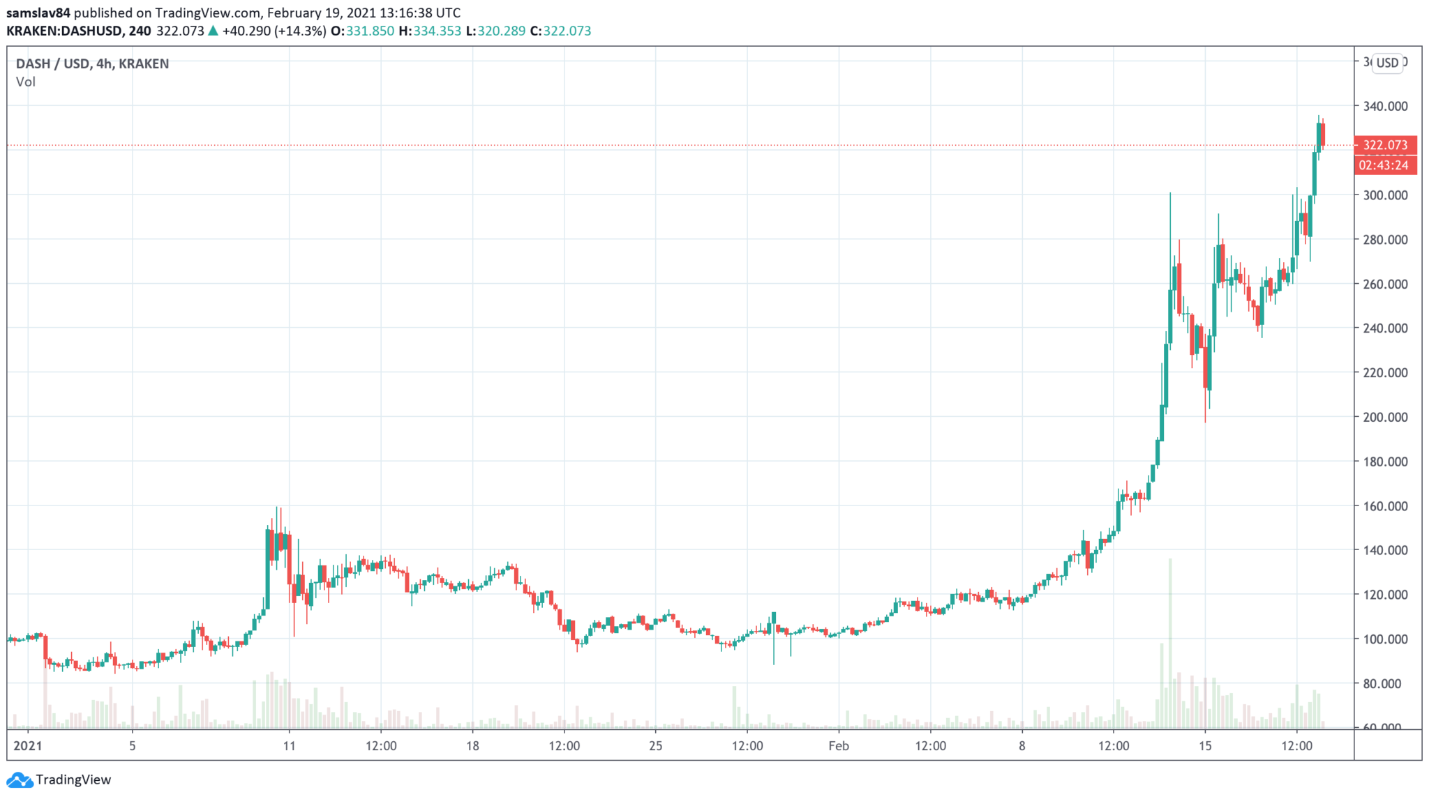 Dash vedie toto privacy coin rallye a aktuálne sa obchoduje za 322 dolárov. Dnešné maximum však bolo 335 $. Dash je stále hlboko pod svojím historickým maximom z decembra 2017, keď dosiahol neskutočných 1625 dolárov. Má teda obrovský rastový potenciál.