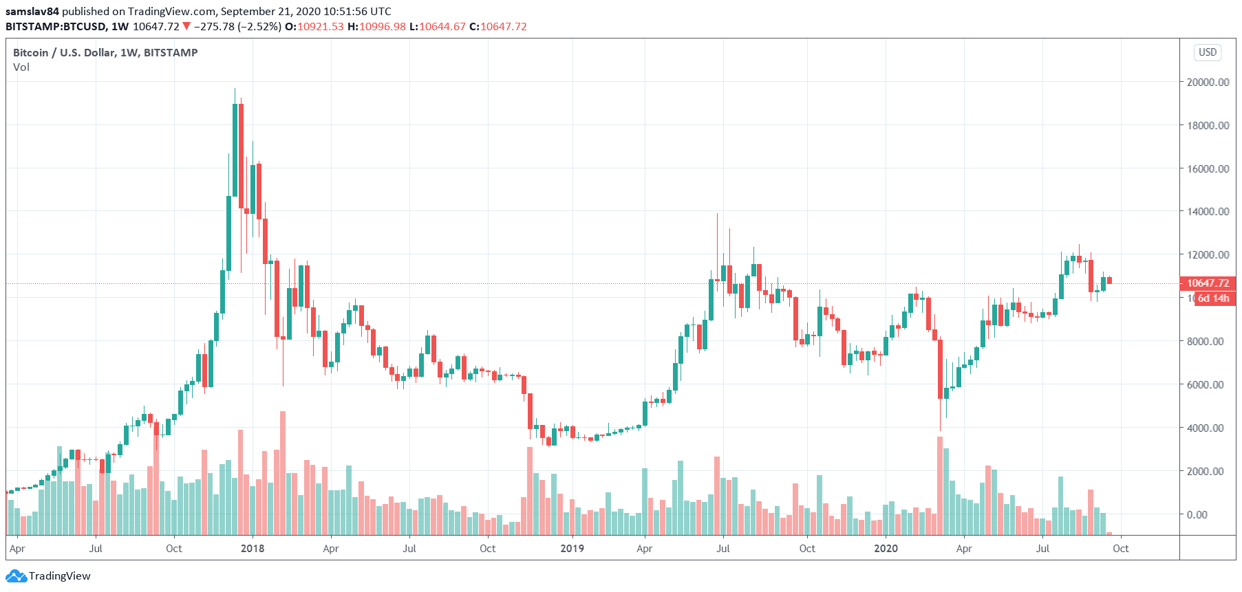 Ako môžete vidieť, časy keď sme sa obávali pádu na 2-3 tisíc dolárov sú už dávno preč. Bitcoin síce v marci tohto roka klesol na 3700 $, dôvodom tohto dumpu však bola panika okolo koronavirusu, ktorá tvrdo zasiahla aj akciové trhy, zlato, či ropu. Nasledoval rýchly rast späť nad 10 000 $, kde sa Bitcoin udržal aj počas prepadov zo začiatku septembra.