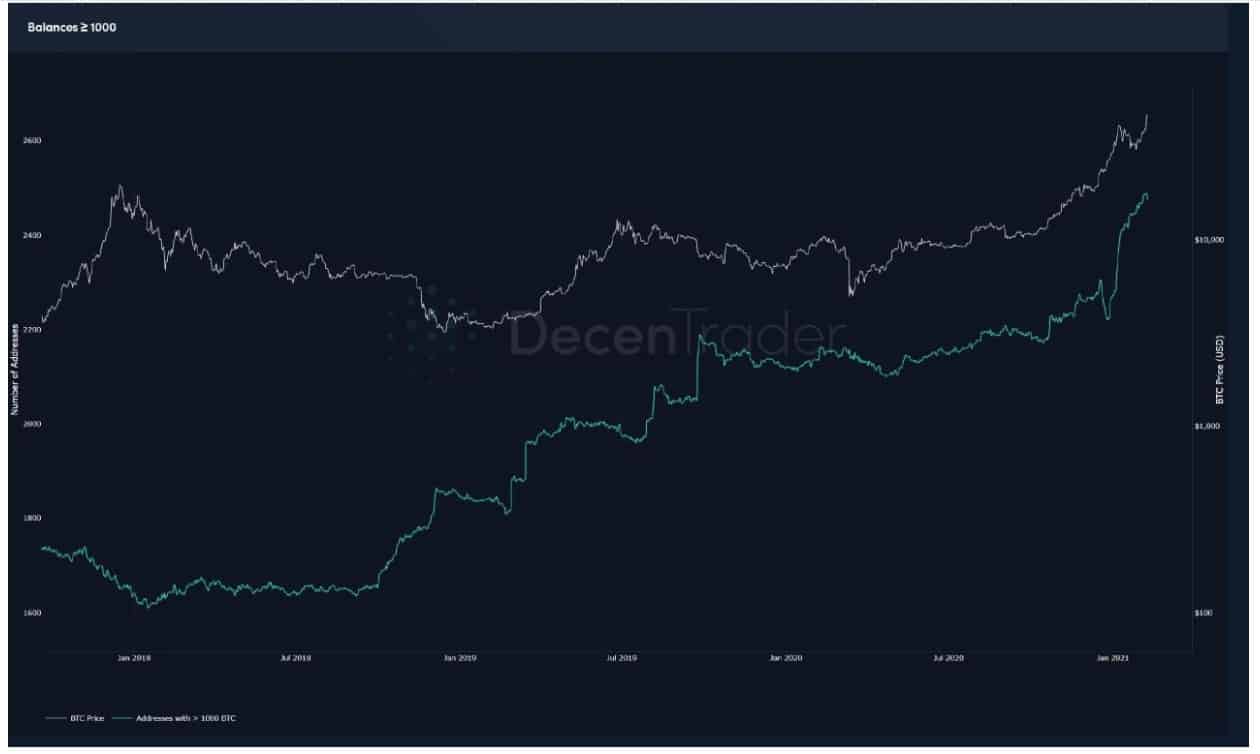 To je hlavný dôvod neustáleho rastu ceny Bitcoinu. V januári táto kryptomena prešla relatívne hlbokou korekciou, vrámci ktorej našla silný support na hladine 30 000 $. Ukázalo sa, že za túto cenu inštitucionálni investori skáču do trhu ako diví.