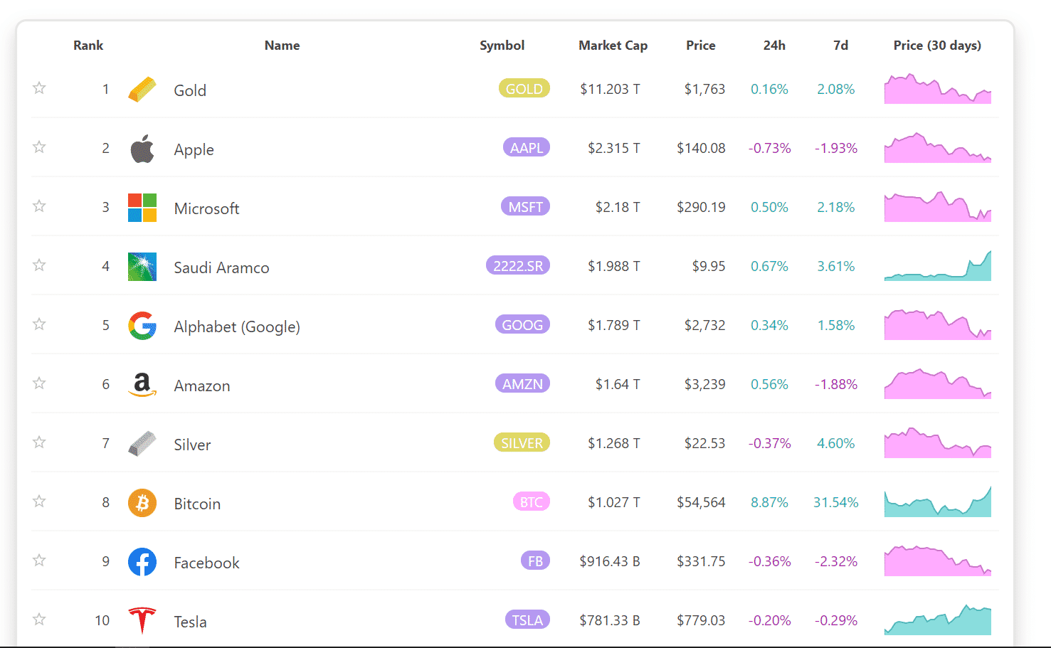 Pre porovnanie, zásoby zlata aktuálne majú hodnotu okolo 10 biliónov dolárov. Najznámejšia akcia, Apple, má hodnotu približne dvojnásobne väčšiu ako Bitcoin. Striebro je na tom veľmi podobne ako BTC. Aktuálne 1,2 biliónov amerických dolárov.