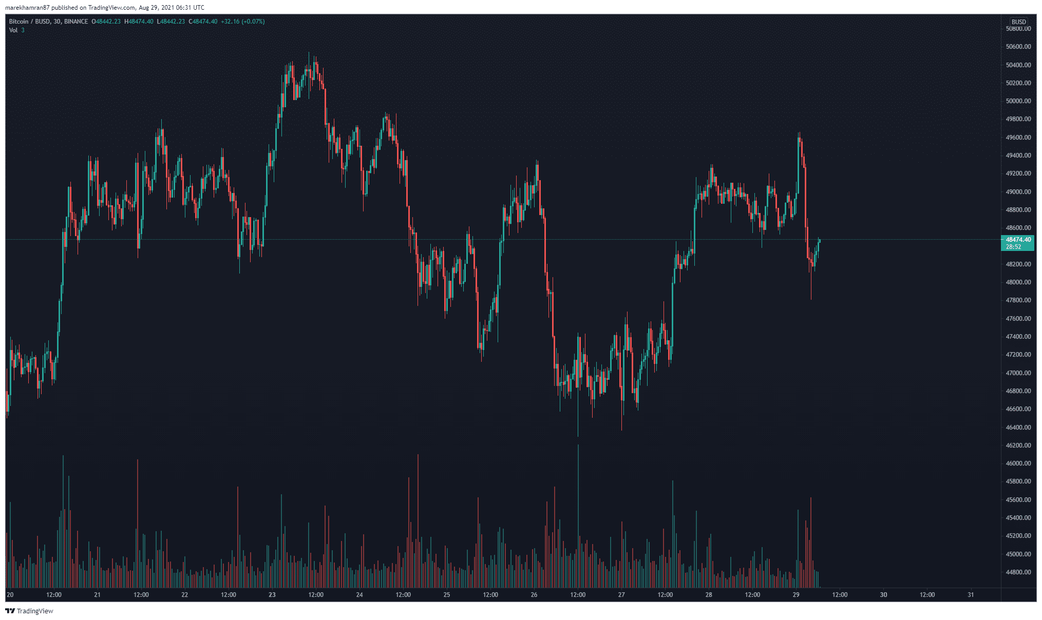 Od májovej obrovskej korekcie na kryptomenovom trhu sme svedkami pozitívneho obdobia pre Bitcoin a celý trh kryptomien. V čase písania tohto článku bola cena najväčšej kryptomeny na úrovni 48 400 USD. Sobotňajšia noc priniesla 3,5-percentný pokles po odmietnutí rezistencie 50 000 USD. Aktuálne však na grafe BTC/USD registrujeme podporu býkov, ktorá tlačí cenu späť nahor.