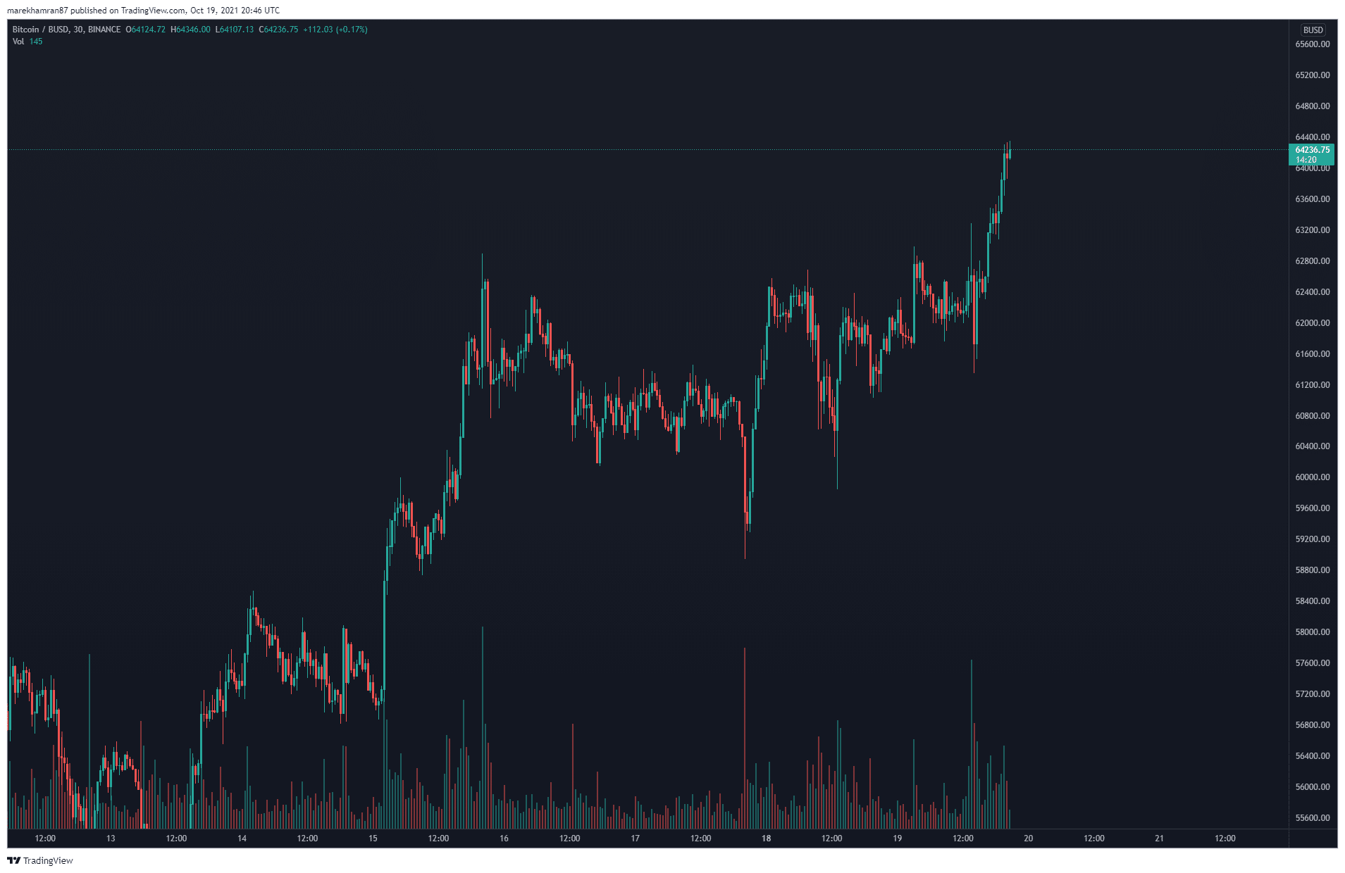 BTC/BUSD 30m TF. Zdroj: TradingView