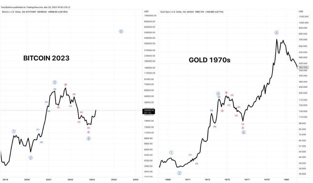 Skrachované americké banky vyvolali silný rastúci trend na trhu so zlatom aj bitcoinom. V dnešnom článku sa ale pozrieme na podobnosť pohybu zlata z roku 1970, ktorý by mohol zopakovať v súčasnosti aj bitcoin. Podľa správy Bitcoinist, túto podobnosť podpisuje vymknutie inflácie spod kontroly.