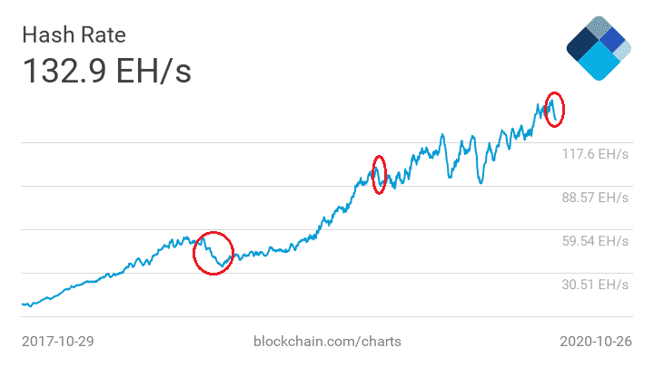 Kevin Zhang z Digital Currency Group predikoval pokles hashratu o minimálne 20 exahashov, pretože v čínskej provincii Sichuan končí obdobie dažďov. Sichuan je domovom najväčších ťažobných spoločností a tie sa teraz postupne sťahujú do ďalších jurisdikcií. Lacná energia z vodných elektrární už naďalej nie je dostupná.