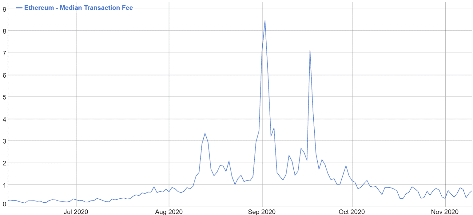 Za transakciu Etherea teraz zaplatíte v priemere 0,5-1 $, sa teda vrátilo do normálu. Ešte v septembri to pritom bolo aj 8 $. I keď, občas sa nájdu aj výnimky. Jeden trader na Uniswape za 120 $ transakciu zaplatil poplatok 9 500 $. Pri dnešných cenách Etherea by to už bolo viac než 10 000 $. Jeho príbeh si môžete prečítať tu: