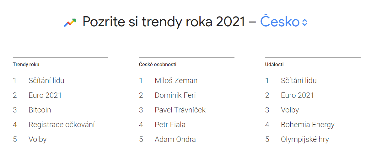 Bitcoin je 3. najvyhľadávanejšie slovo v Česku za rok 2021 podľa Google trends
