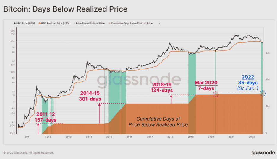 Vyššie uvedený graf ukazuje, ako všetky predchádzajúce klesajúce trendy dosiahli dno presne vtedy, keď sa trhová cena nachádzala pod realizovanou cenou. To, ako dlho sa bude formovať dno, samozrejme, metrika neurčí, no pre dlhodobých hodlerov by sa táto zóna mohla ukázať, ako vhodný čas na akumulovanie mincí.