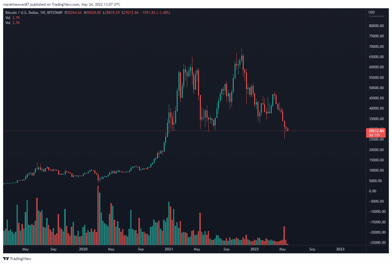 Bitcoin sa opäť prepadol pod 30 000 dolárov. Najväčšia kryptomena sa drží v červených číslach už rekordných 8 týždňov. Zmena je v nedohľadne.